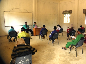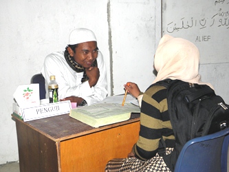 Ini lah beberapa dokumentasi yang saya ambil saat berlangsungnya acara. Terlihat calon santri yang serius mengerjakan soal soal. Soal yang disediakan panitia diambil dari beberapa pelajaran. Seperti, Bahasa Indonesia, Matematika, Bahasa Inggris dan Agama. Selain ujian tertulis, panitia juga mengadakan ujian praktek. Kita bisa melihat di foto, ustad kita, Ustad Arif Rahman S.Pd.I sedang menguji lancar atau tidaknya calon santri membaca Al-Quran. Alhamdulilah, acara yang dimulai dari jam 07.30 dapat berjalan sukses dan berakhir sebelum waktu dzuhur. Semoga, antusias calon santri Anambas untuk gelombang ke dua nanti semakin besar. So, tunggu artikel kita untuk penerimaan santri baru tahap ke dua yang dijadwalkan akhir bulan Mei nanti Wassalam