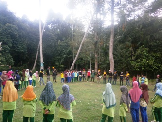 Ternyata meraka adalah Panitia outbond Komitalama, kemudian kami berkumpul di tengah lapangan membentuk lingkaran yang besar, satu persatu kakak tersebut meperkenalkan dirinya masing-masing  dengan banyak aksi yang di lakukan kakak-kakak tersebut kami semua mersa terhibur dengan perkenalan diri mereka. Setengah hari full kami hanya bermain saja, banyak sekali permain yang kami mainkan pada hari itu, tidak terasa waktu Zuhur telah sampai kami berwudhu membersihkan diri, kemudian adzan dikumandangi oleh seorang santri, kami pun maulai membentuk barisan sholat unut melakasanakan sholat zuhur berjama’ah. Setelah selasai sholat kami melanjutakan aktivitas kami, dengan makan siang setelah makan kami melanjutkan permainan lagi, semakin lama tubuh mulai merasa lemah tidak tersa telah banyak  permainan yang telah kami mainkan setengah hari penuh itu, akhirnya kami istirahat sekit 5 menit untuk duduk sejenak, kemudiankami melanjutkan permainan lagi.